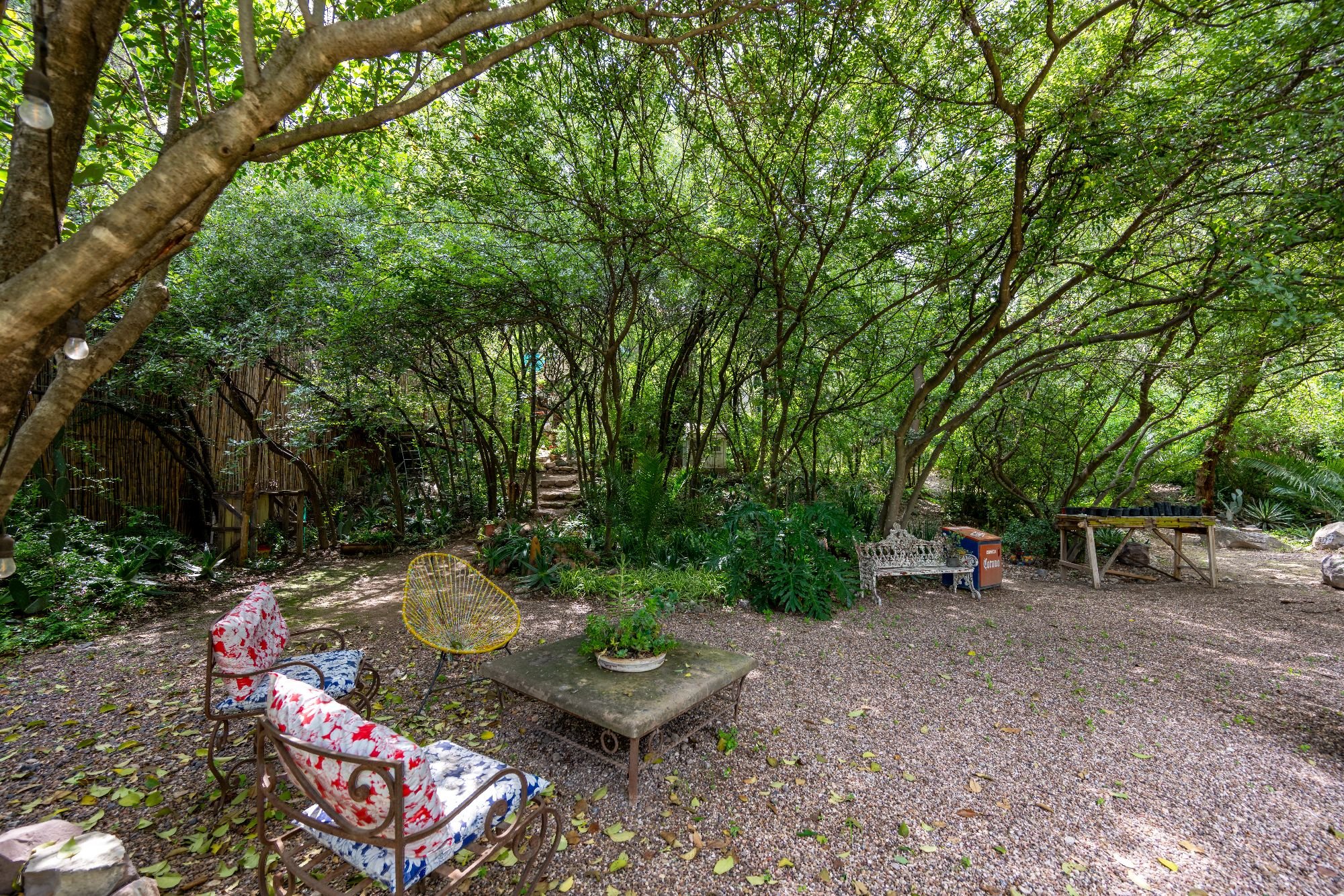 Forested garden and outdoor dining area Casa Carrizo San Miguel