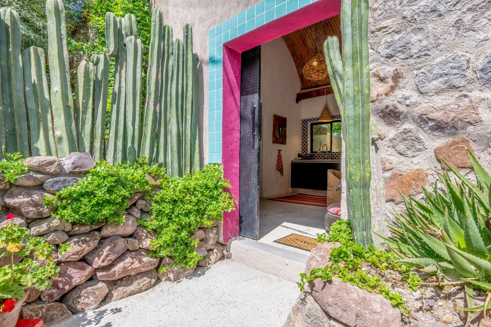 Casa Carrizo offers an enchanting retreat in Atotonilco, San Miguel de Allende, seamlessly blending natural beauty with thoughtful design. This unique property features three distinct areas that can be integrated: the Main House, an independent guesthouse with excellent rental potential, and a street-level showroom. Surrounded by expansive gardens with a private mini-forest of mature trees—including pepper, walnut, date palms, mulberry, yellow acacia, jacaranda, mesquite, pine, lemon, and more—this residence is a nature lover’s dream. The original 1700s aqueduct enhances the landscape’s historic charm.