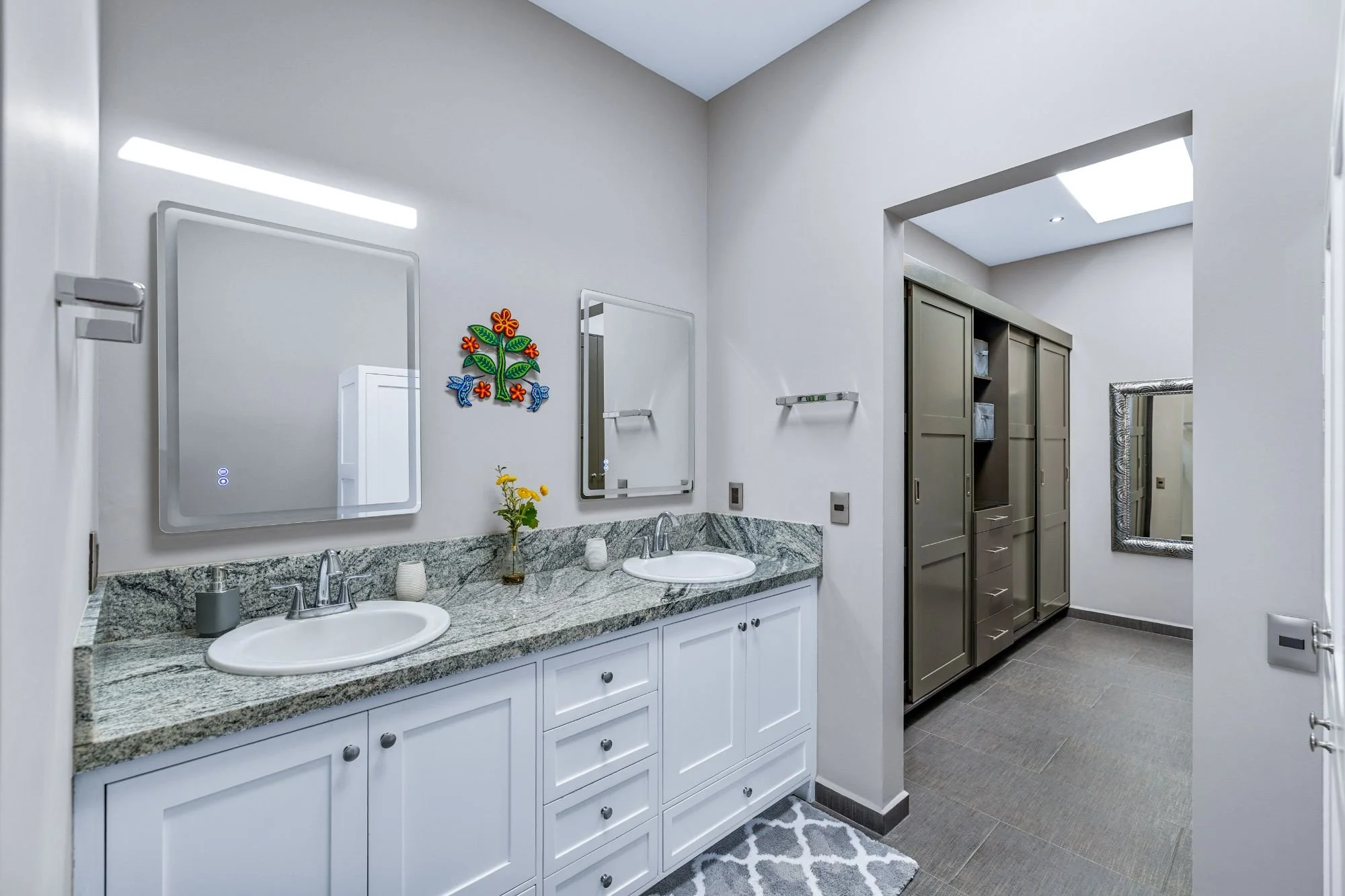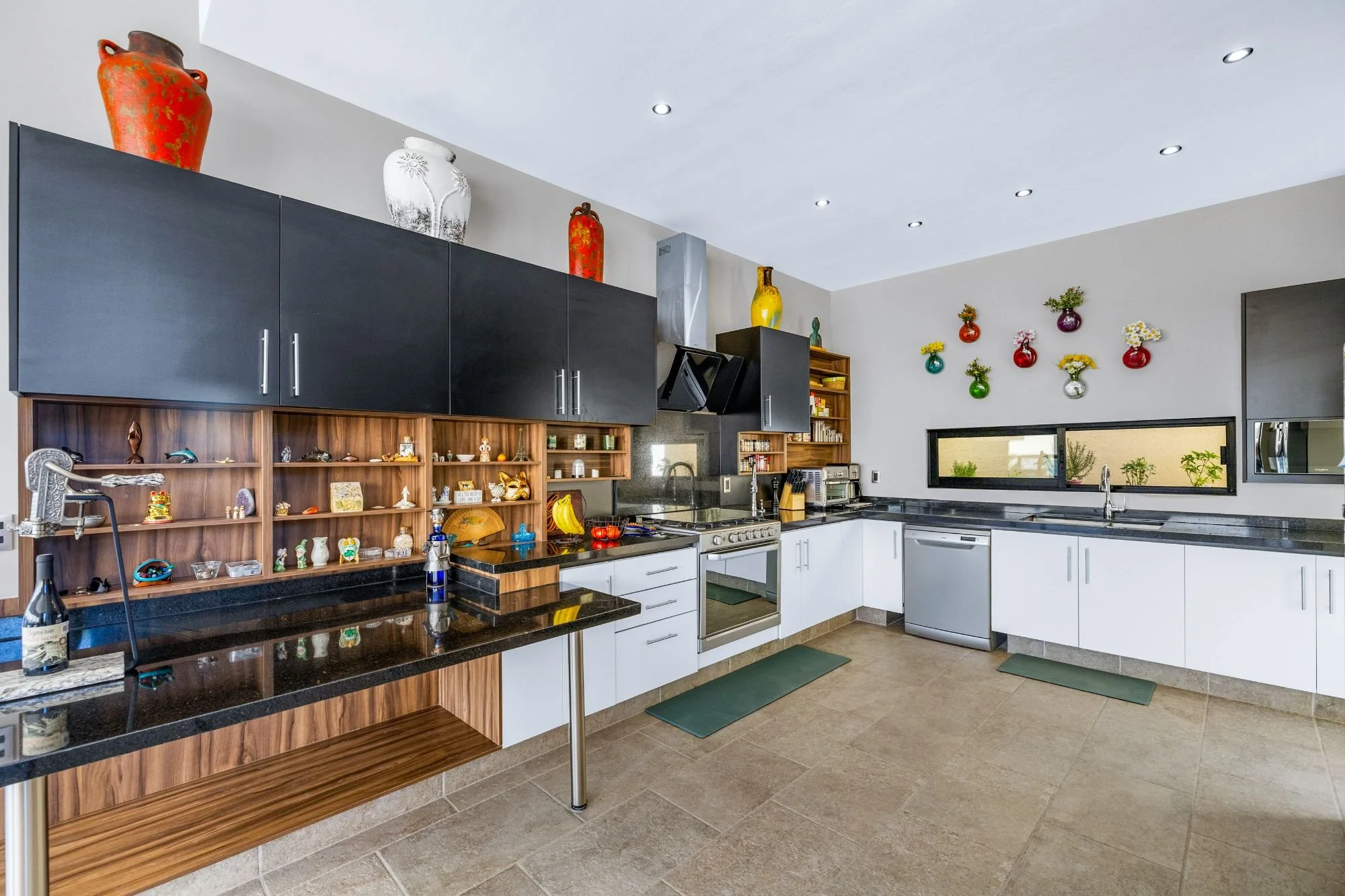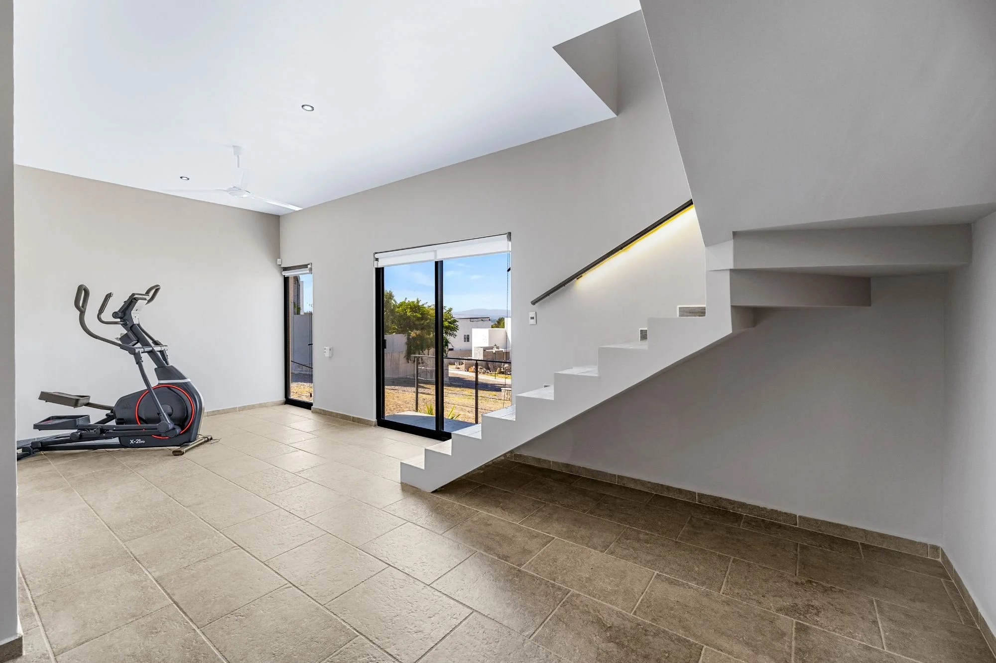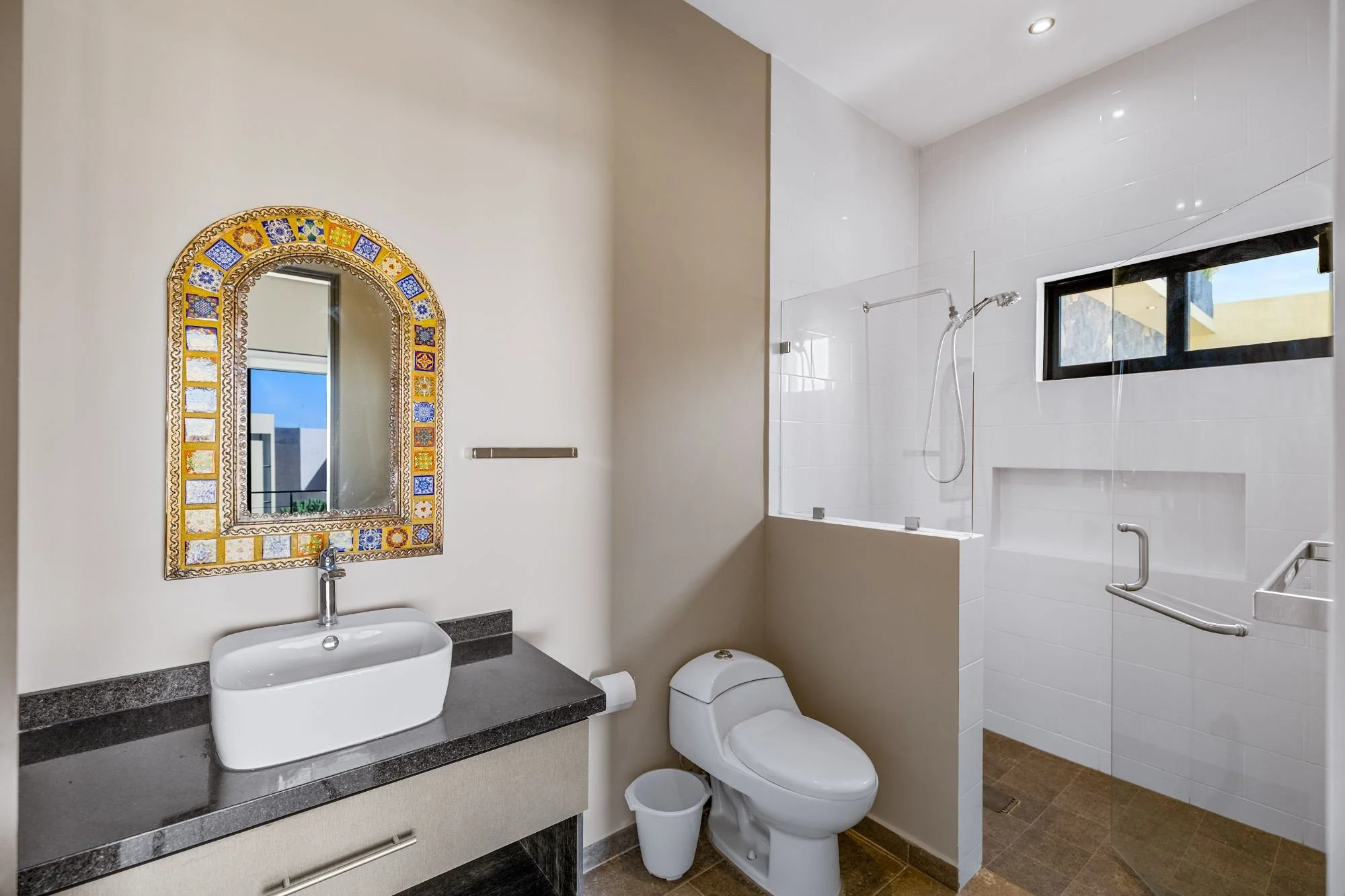 The rooftop terrace with jacuzzi delivers dramatic panoramas, while the flowing interiors create a seamless connection to the outdoors. The lower level hosts two guest bedrooms with en-suite baths and a shared terrace, alongside an independent casita with its own access, kitchenette, living space, and additional bedrooms—ideal for guests or multigenerational living.