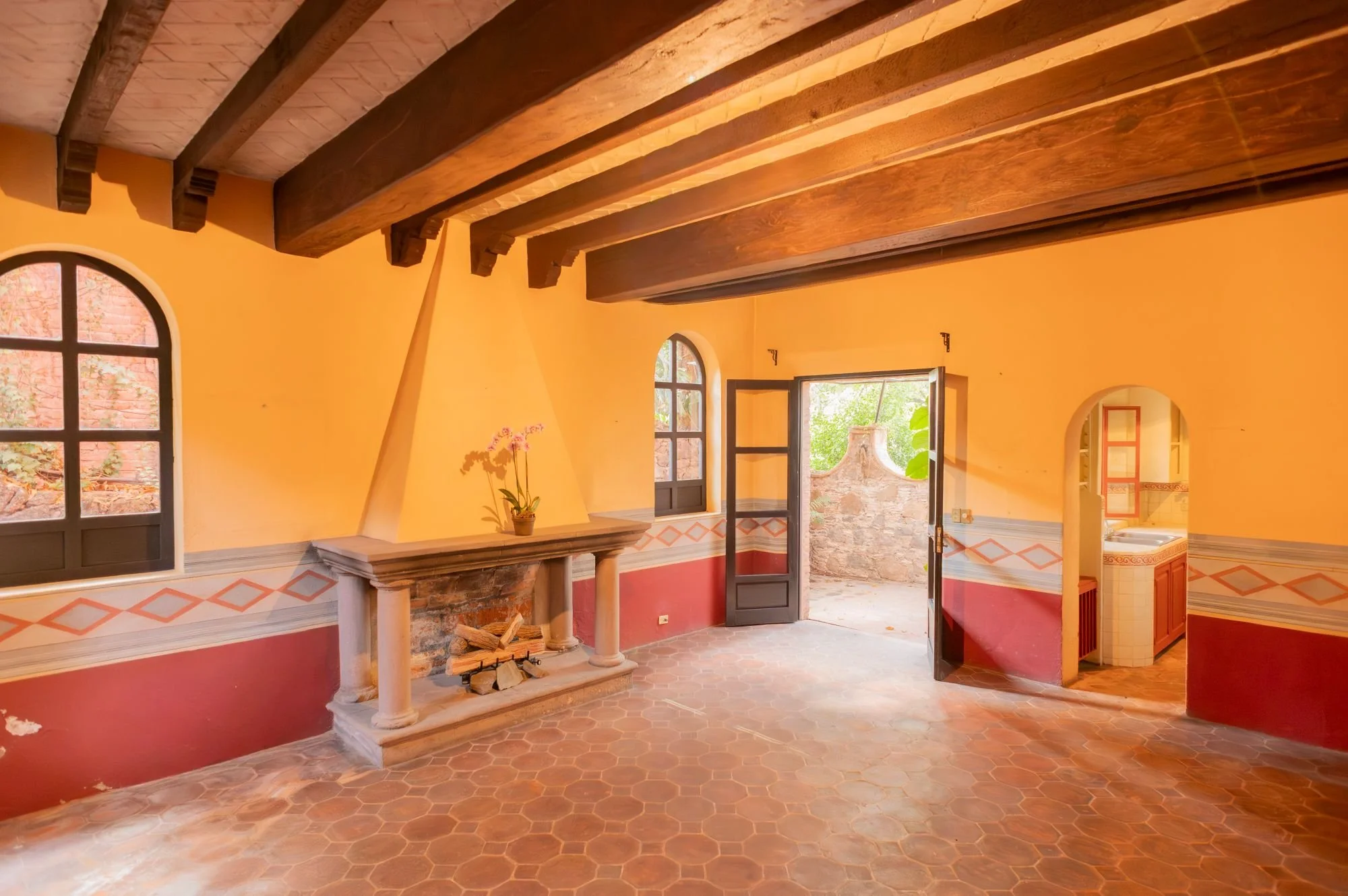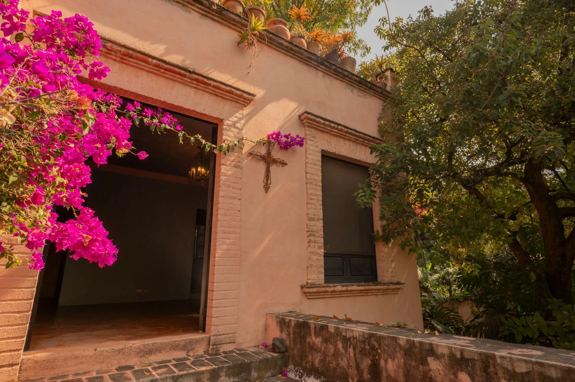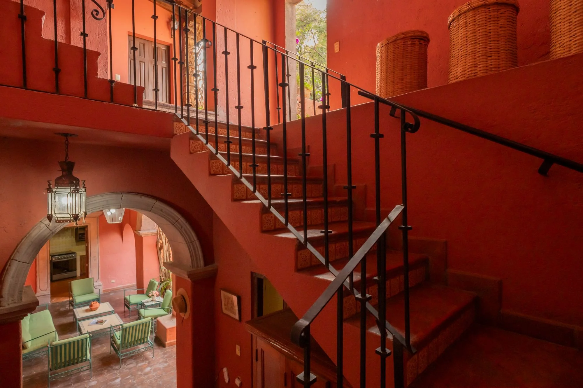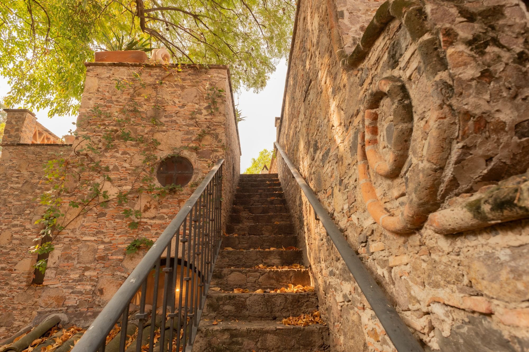 Casa Jade is a breathtaking colonial residence in the heart of San Miguel de Allende, blending classic Mexican architecture with a serene, private ambiance. Located on one of Centro’s most charming cobblestone streets, just steps from the Cultural Center and Juárez Park, this home offers an unparalleled setting. The residence features hand-carved wooden doors, lush courtyards, and stone walls accented with cantera arches and terracotta tones. A traditional-tile fountain anchors the main courtyard, while the covered terrace serves as the social heart, ideal for entertaining or relaxing. The primary bedroom is on the main floor, with two additional bedrooms upstairs that enjoy private terraces and scenic views. A separate casita provides independent guest accommodations. With abundant natural light and seamless indoor-outdoor living, Casa Jade perfectly captures the essence of San Miguel de Allende.