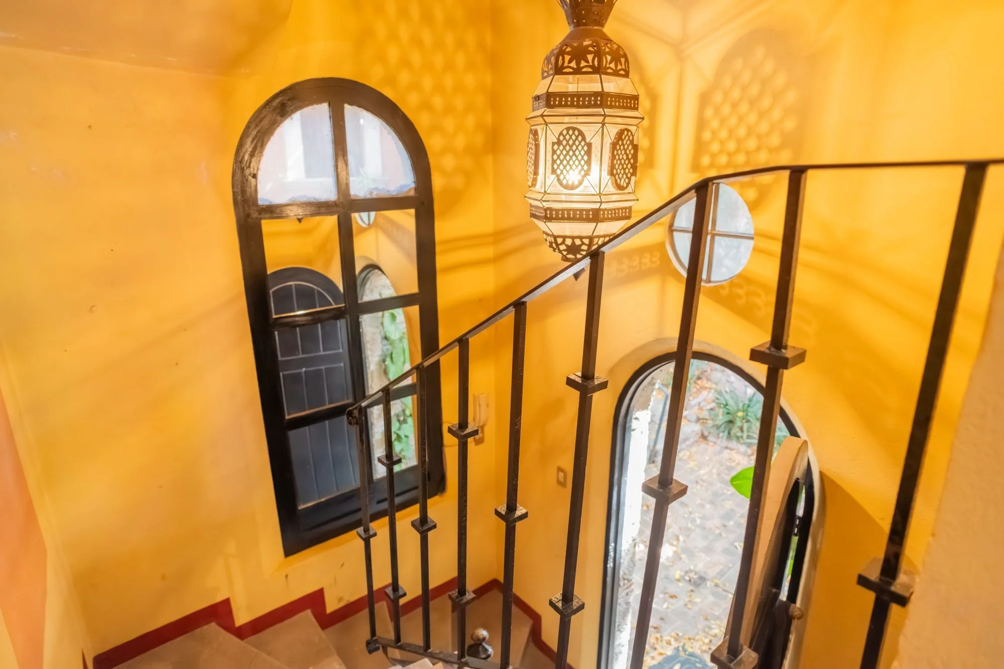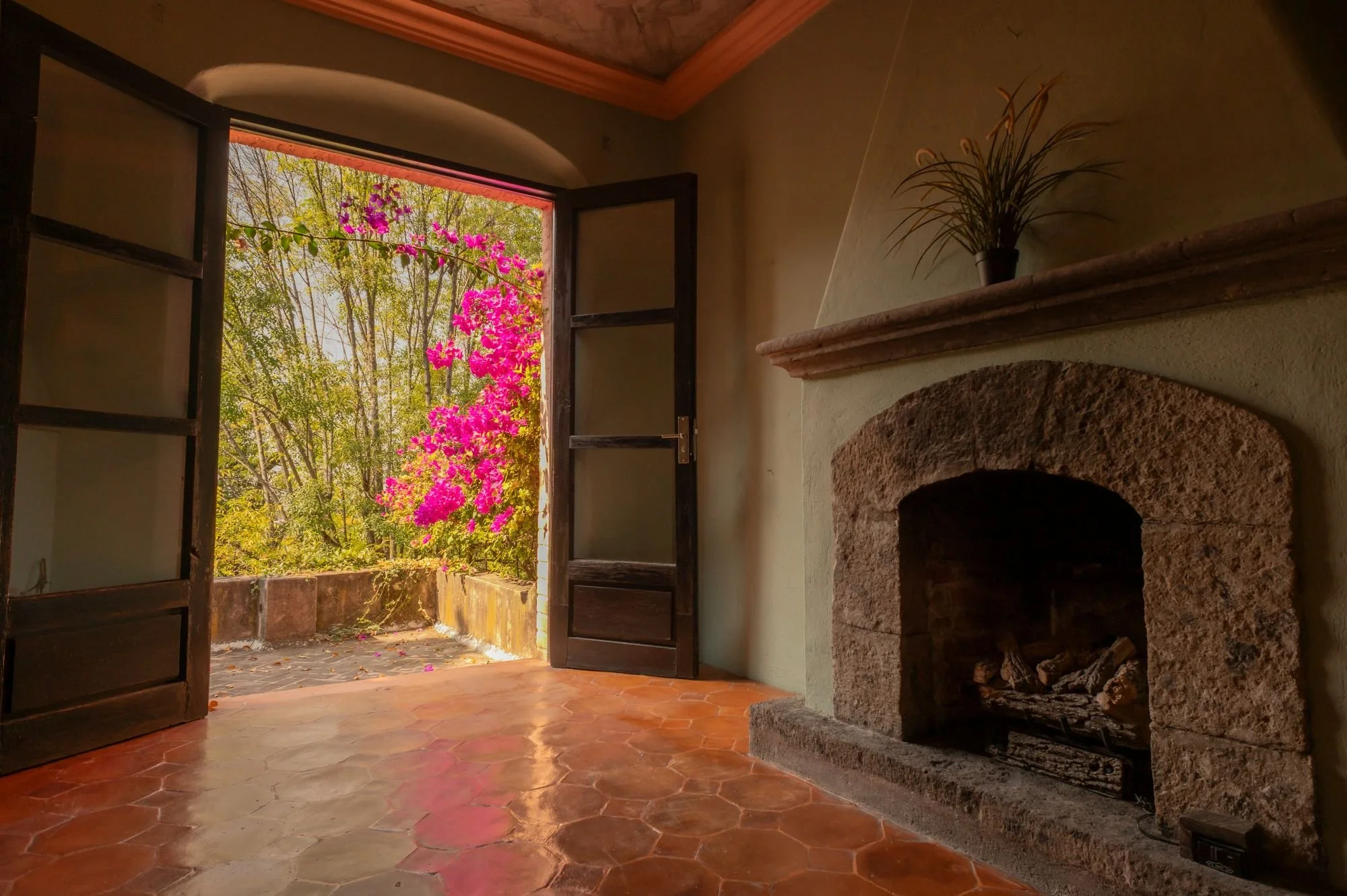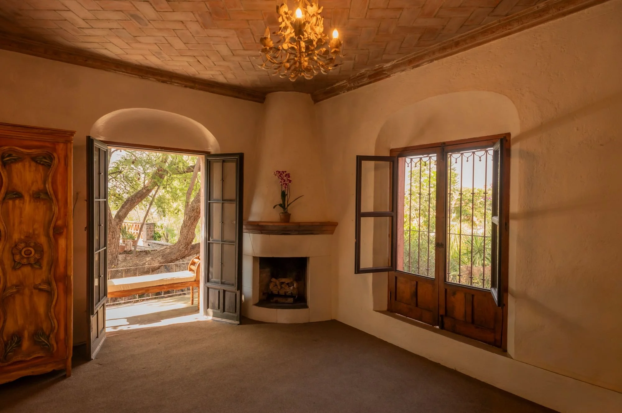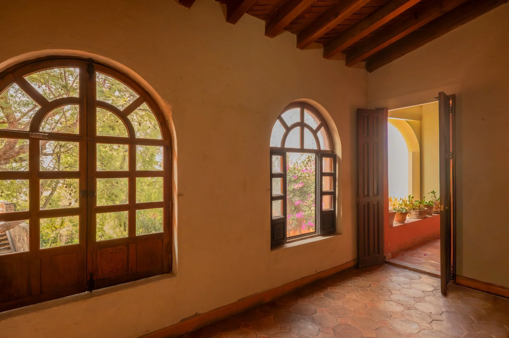 Casa Jade is a breathtaking colonial residence in the heart of San Miguel de Allende, blending classic Mexican architecture with a serene, private ambiance. Located on one of Centro’s most charming cobblestone streets, just steps from the Cultural Center and Juárez Park, this home offers an unparalleled setting. The residence features hand-carved wooden doors, lush courtyards, and stone walls accented with cantera arches and terracotta tones. A traditional-tile fountain anchors the main courtyard, while the covered terrace serves as the social heart, ideal for entertaining or relaxing. The primary bedroom is on the main floor, with two additional bedrooms upstairs that enjoy private terraces and scenic views. A separate casita provides independent guest accommodations. With abundant natural light and seamless indoor-outdoor living, Casa Jade perfectly captures the essence of San Miguel de Allende.