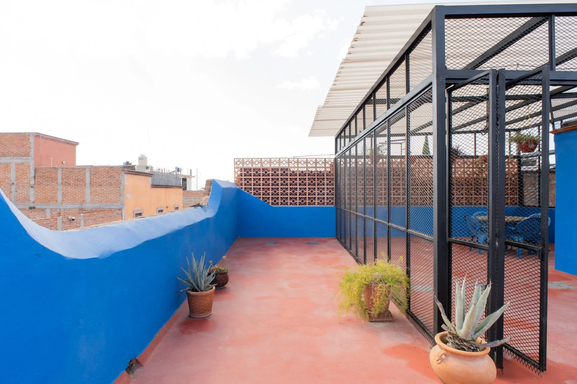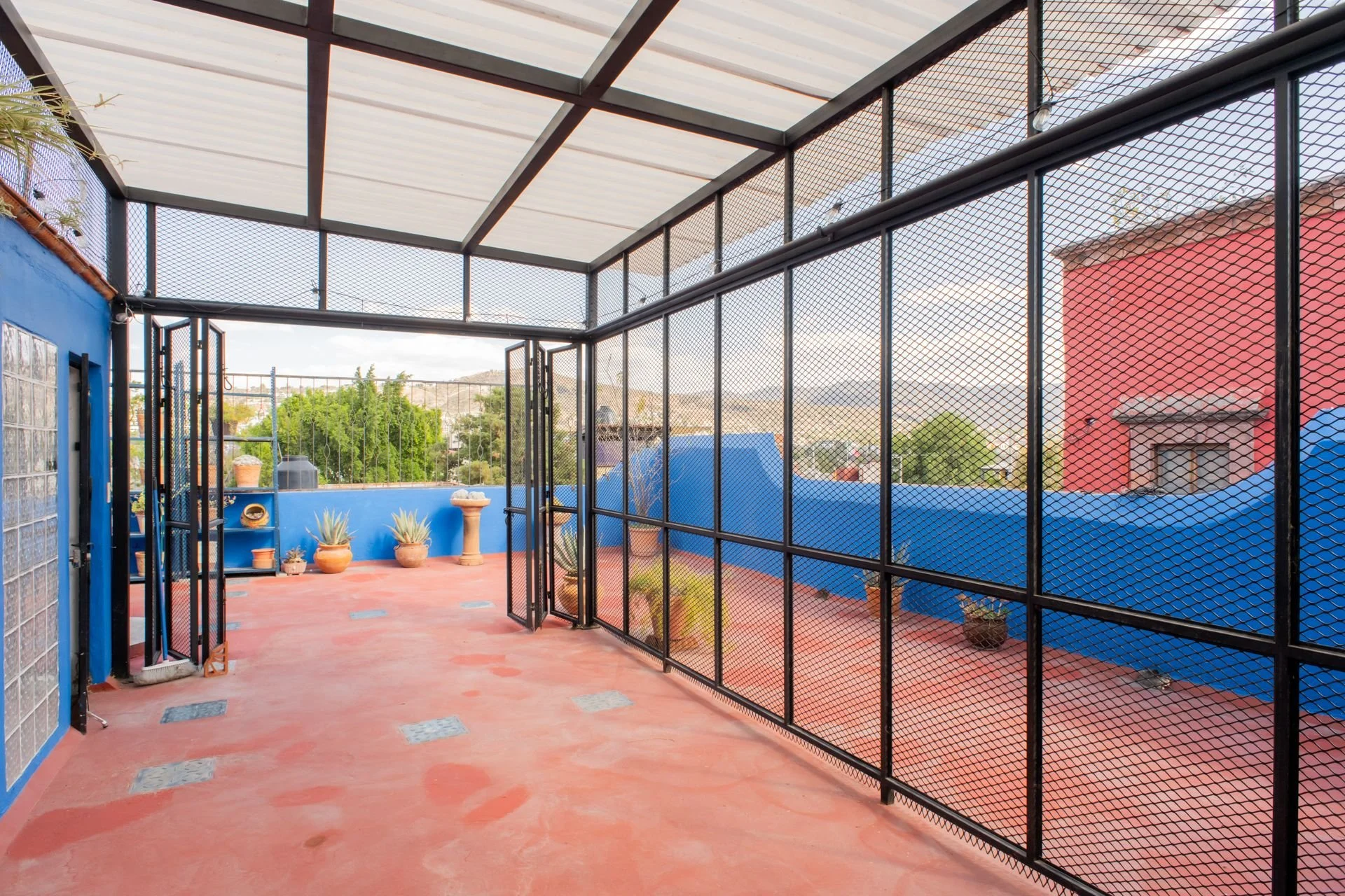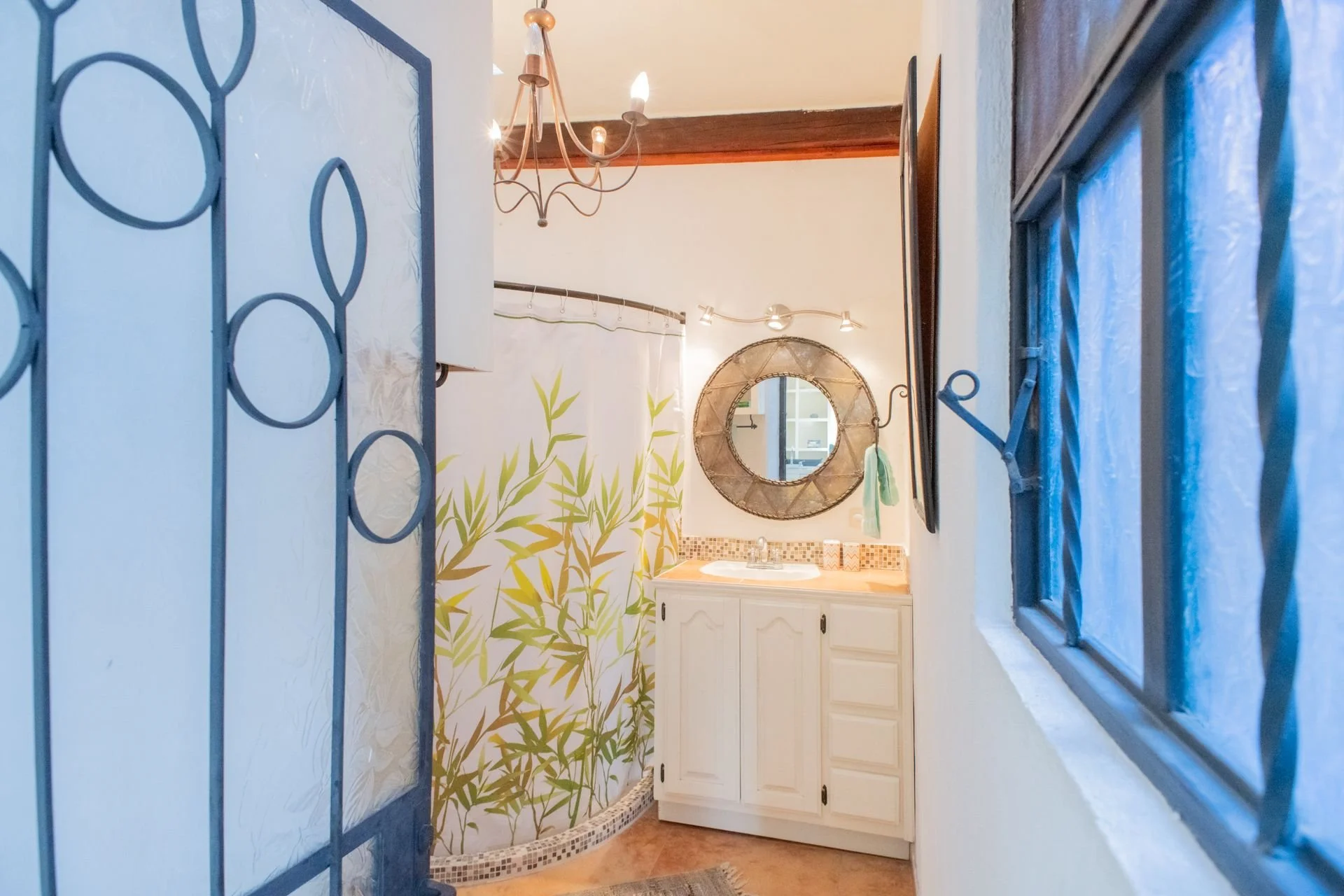 Casa Santuario is a beautifully reimagined two-story traditional Mexican home in San Miguel de Allende, offering a perfect blend of classic craftsmanship and artistic style. This recently renovated residence features brick columns, hand-selected Talavera tiles, crisp white ceramic floors, and custom wrought-iron details throughout. Natural light enhances the handcrafted textures, creating a warm and inviting atmosphere. The open-concept living and dining area flows seamlessly into a spacious kitchen adorned with hand-painted cabinets and artisanal finishes. A lush landscaped garden with vibrant hibiscus and a forty-year-old cypress tree provides a serene private retreat. The property includes a newly built single-level casita with a private entry and rooftop terrace, ideal for guests or rental opportunities. Upstairs, the primary suite includes a private office and garden views, complemented by two guest bedrooms and a unique "Catio" rooftop enclosure. Casa Santuario offers the perfect combination of tradition, creativity, and modern comfort in the heart of San Antonio.