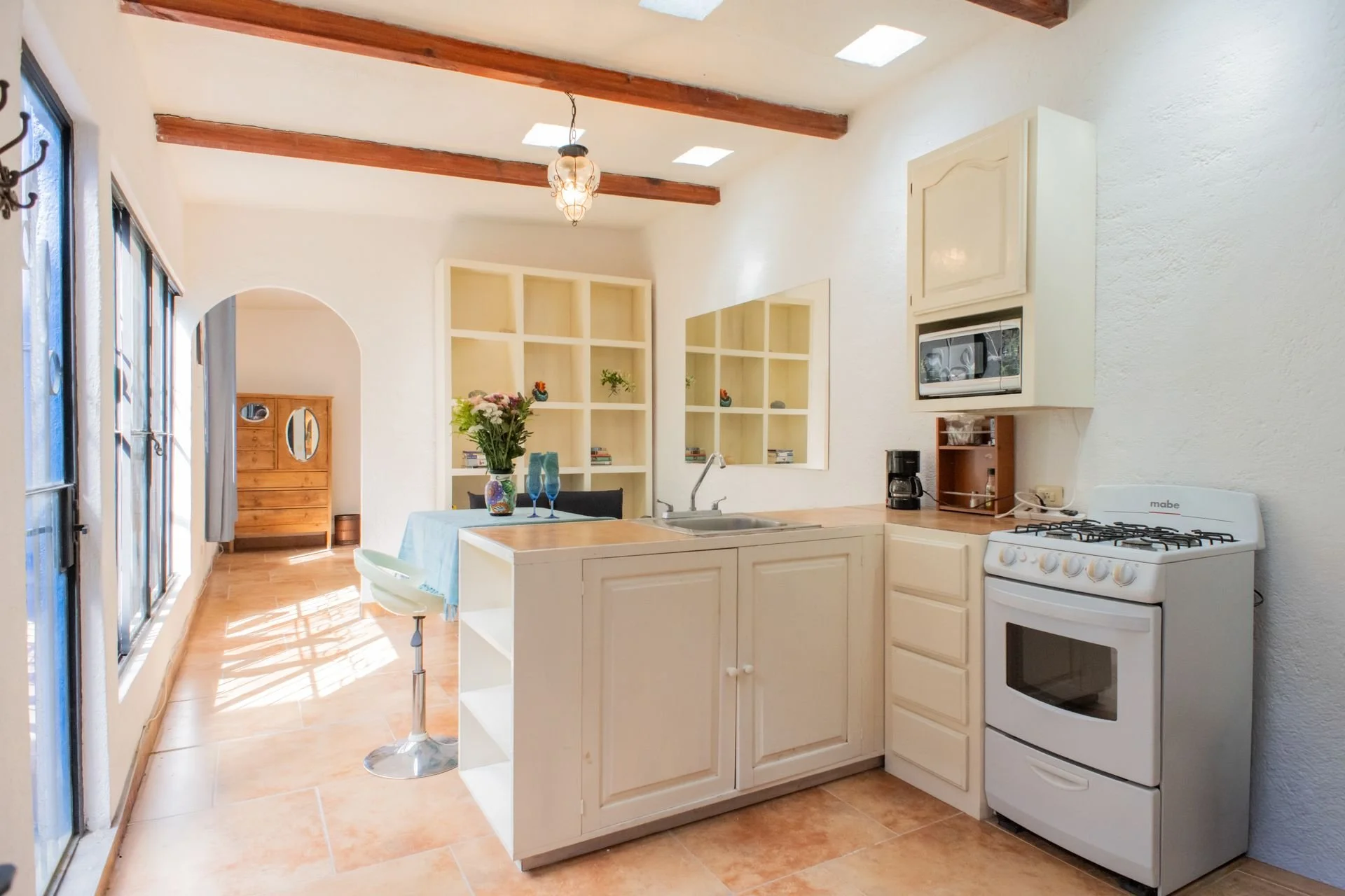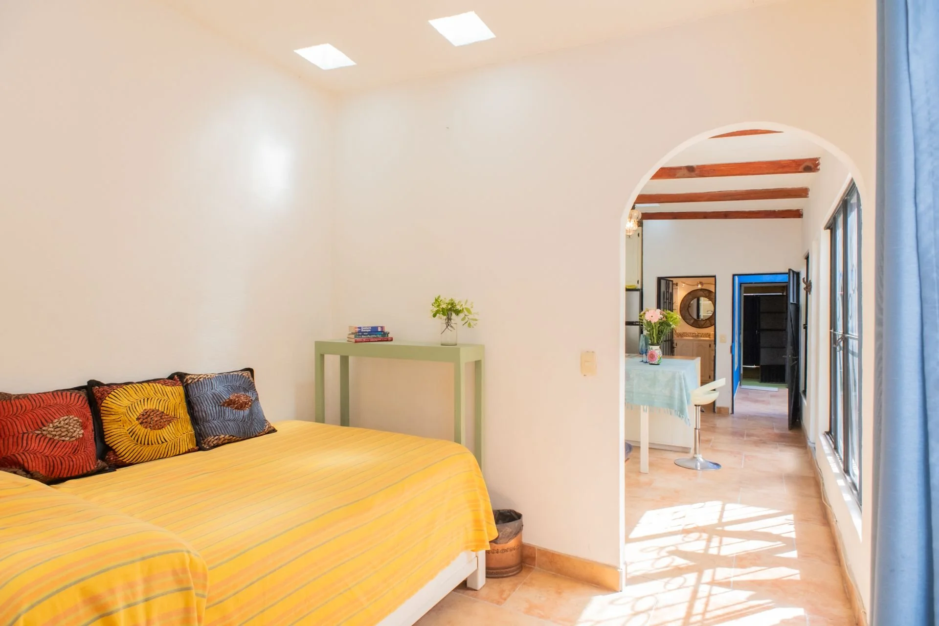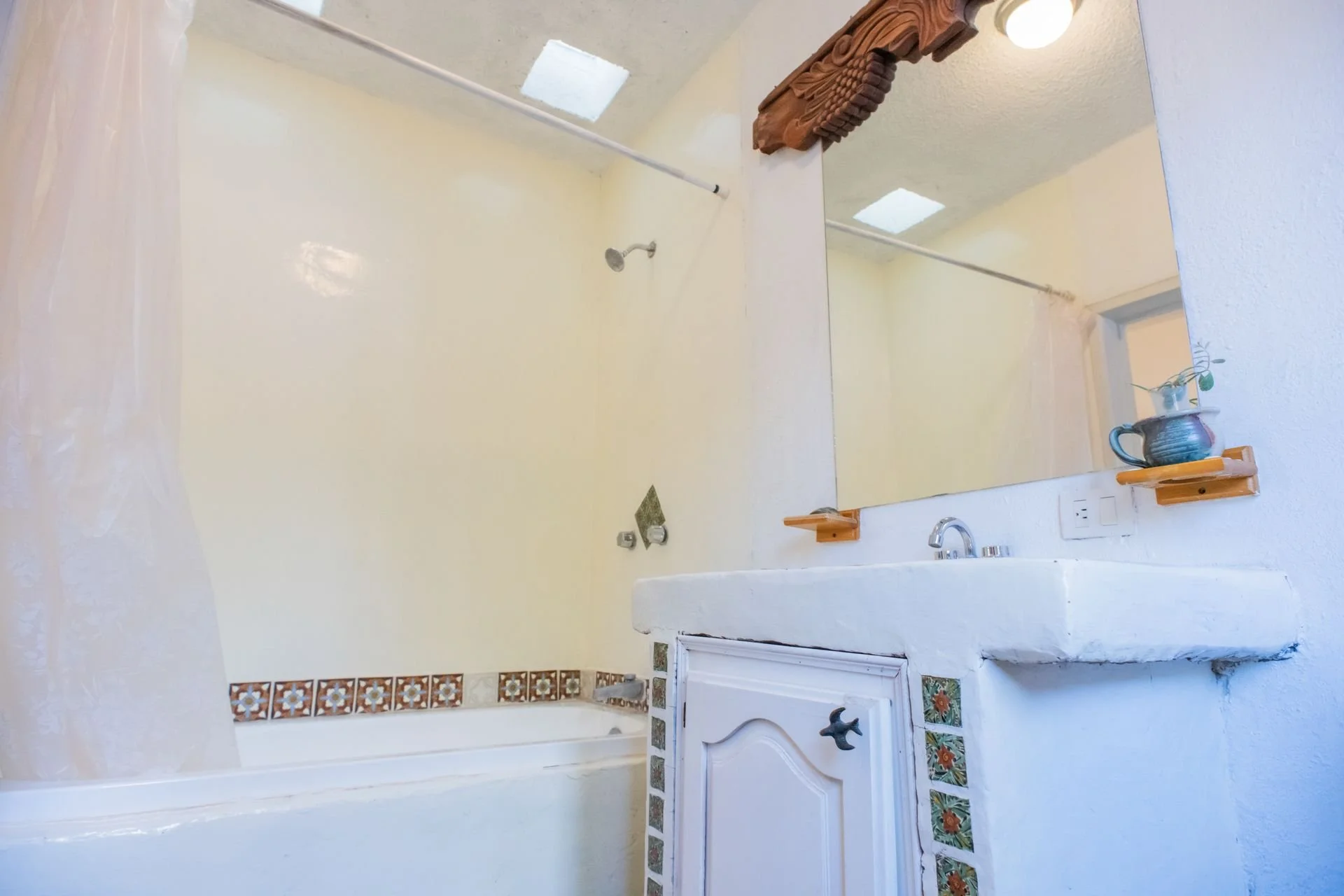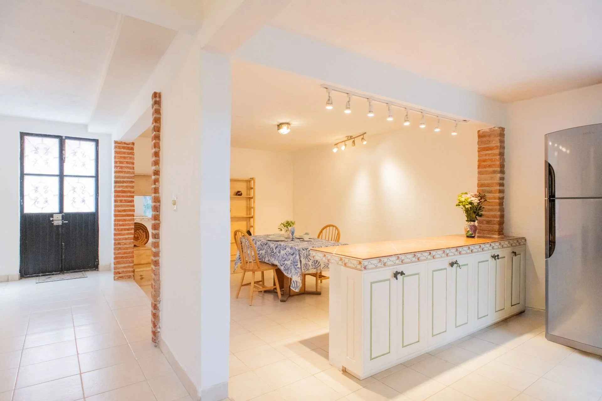 Casa Santuario is a beautifully reimagined two-story traditional Mexican home in San Miguel de Allende, offering a perfect blend of classic craftsmanship and artistic style. This recently renovated residence features brick columns, hand-selected Talavera tiles, crisp white ceramic floors, and custom wrought-iron details throughout. Natural light enhances the handcrafted textures, creating a warm and inviting atmosphere. The open-concept living and dining area flows seamlessly into a spacious kitchen adorned with hand-painted cabinets and artisanal finishes. A lush landscaped garden with vibrant hibiscus and a forty-year-old cypress tree provides a serene private retreat. The property includes a newly built single-level casita with a private entry and rooftop terrace, ideal for guests or rental opportunities. Upstairs, the primary suite includes a private office and garden views, complemented by two guest bedrooms and a unique "Catio" rooftop enclosure. Casa Santuario offers the perfect combination of tradition, creativity, and modern comfort in the heart of San Antonio.