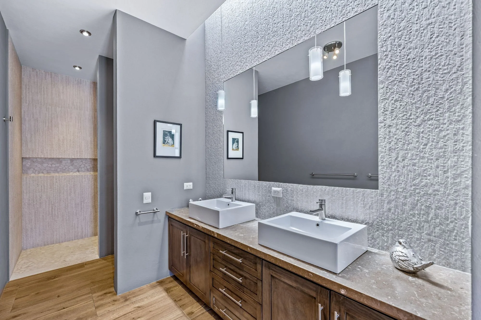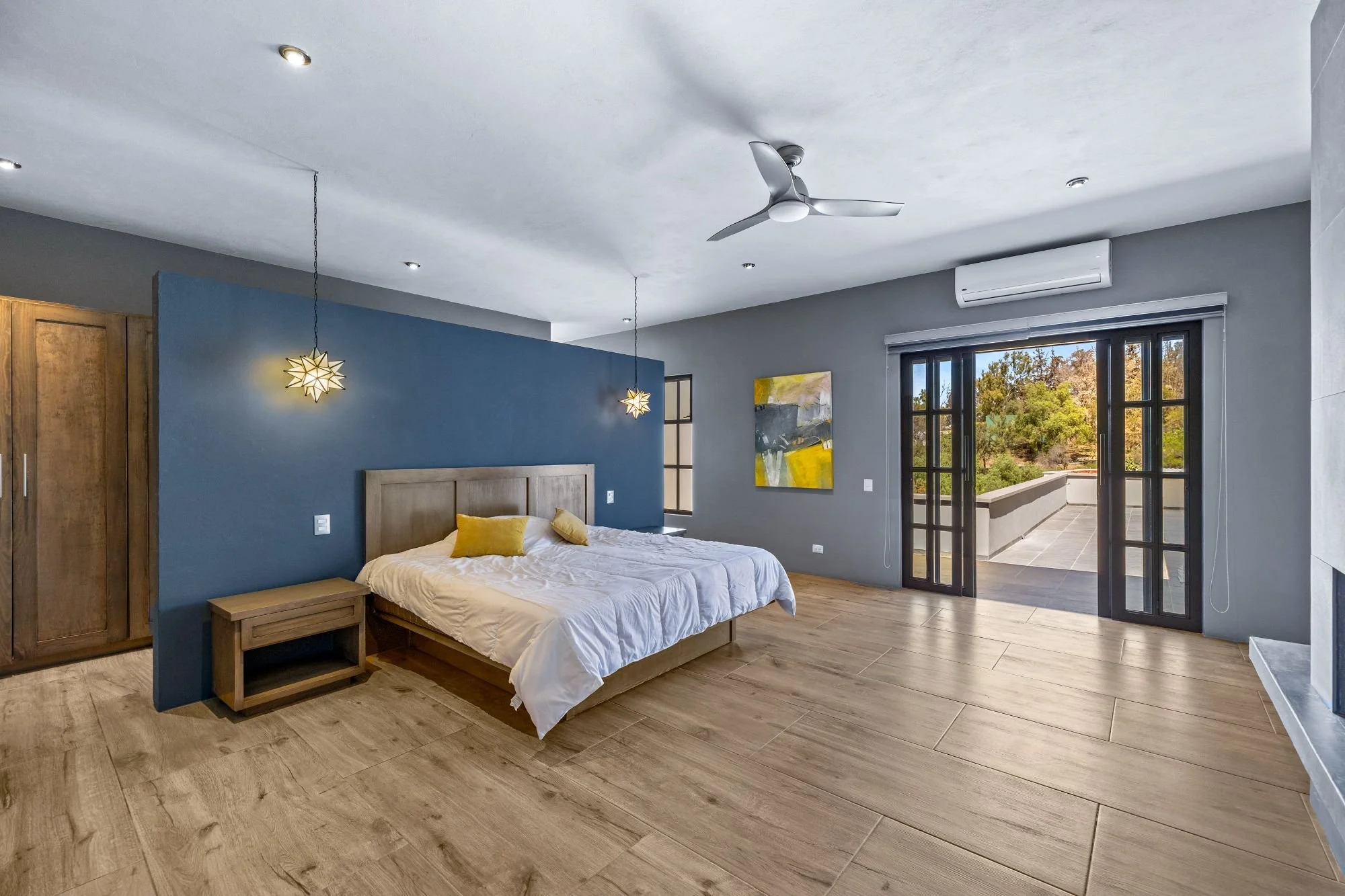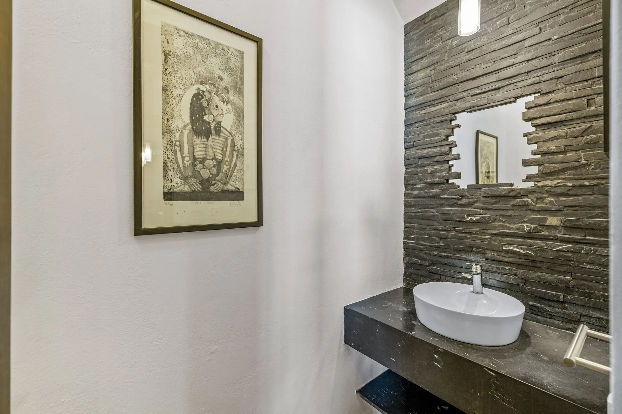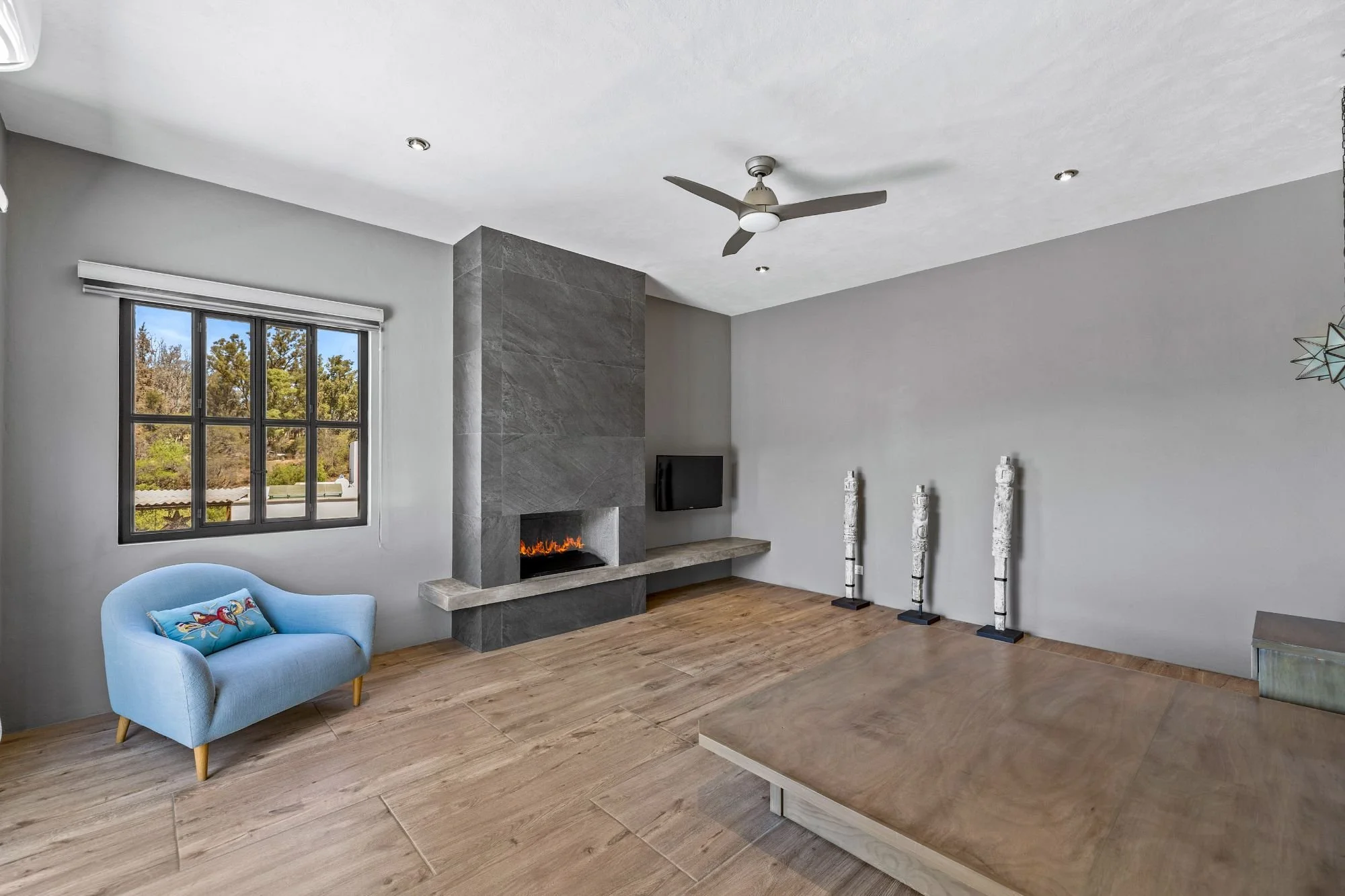 Casa San Uriel is a contemporary single-family home located in the exclusive gated community of El Paraíso, just above Centro in San Miguel de Allende. This beautifully designed residence offers the perfect balance of privacy and convenience, with quick access to Plaza La Luciérnaga, essential services, hospitals, and supermarkets. Built approximately five years ago, the home showcases clean architectural lines, refined finishes, and abundant natural light throughout its thoughtfully planned layout. The open living and dining areas are highlighted by a striking natural stone accent wall and polished concrete details, while the light-filled spaces connect seamlessly to the front garden and exterior terraces. Featuring two spacious bedroom suites with fireplaces, generous outdoor areas, and a rooftop terrace with panoramic valley and city views, Casa San Uriel creates an inviting sanctuary ideal for relaxed living and memorable entertaining.