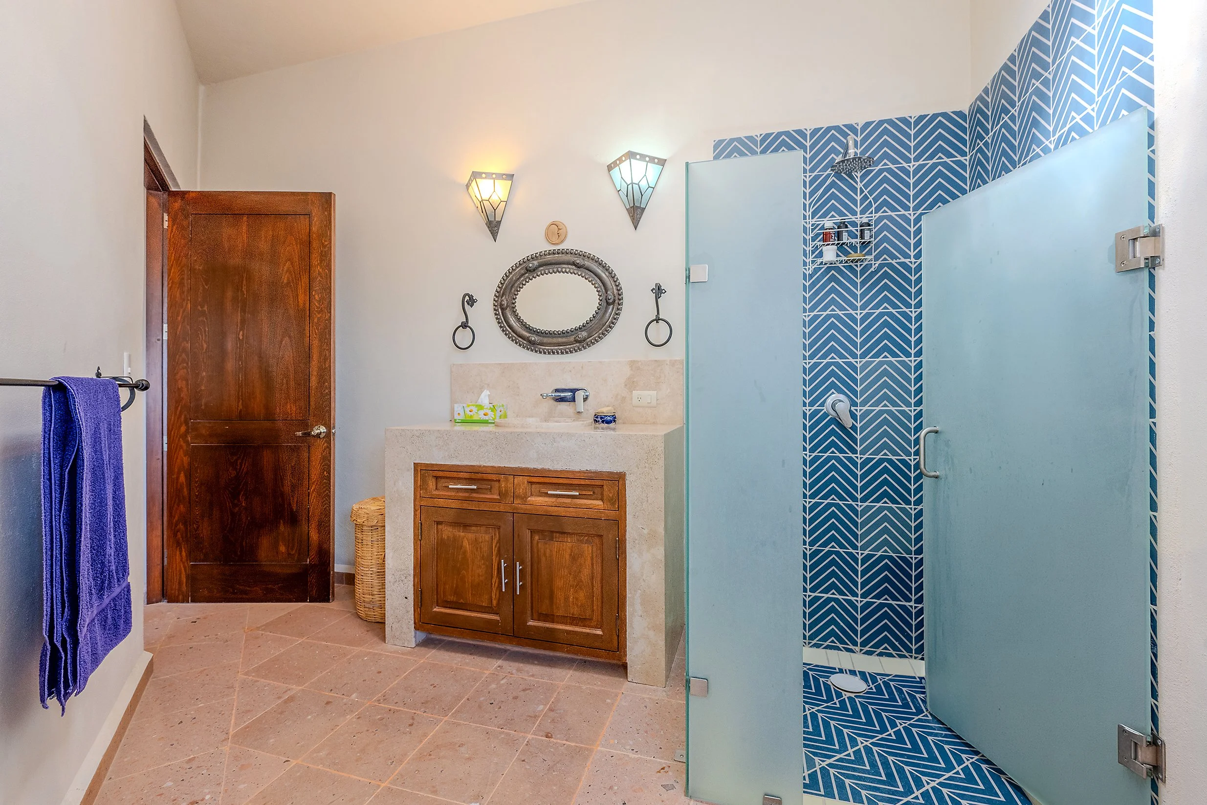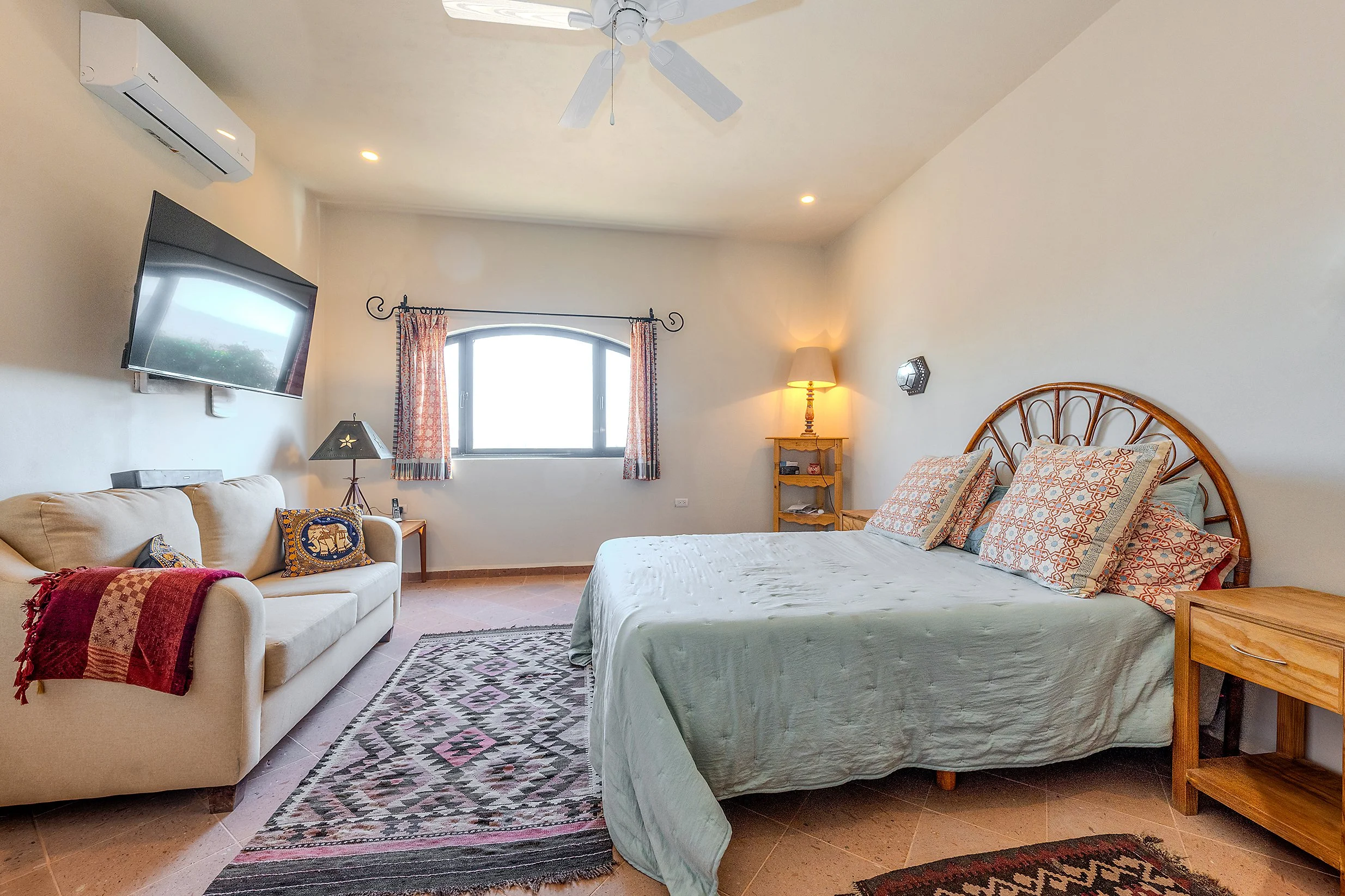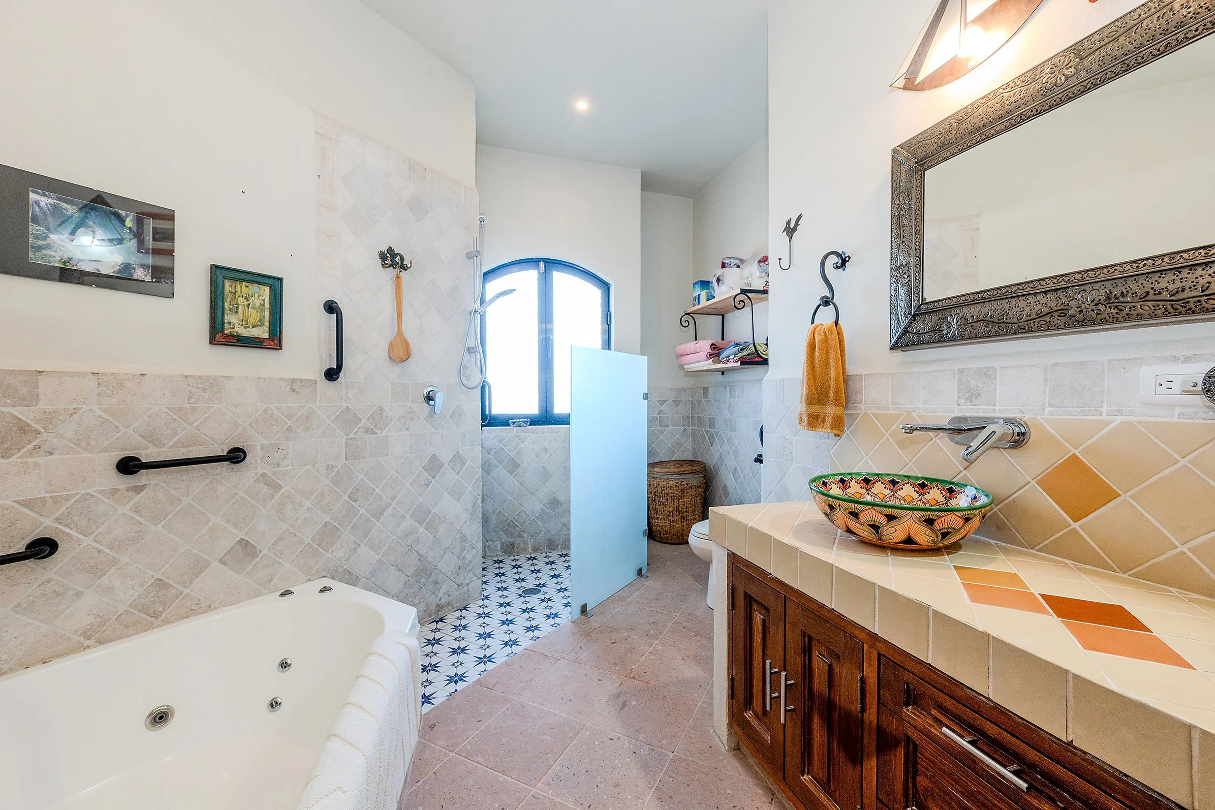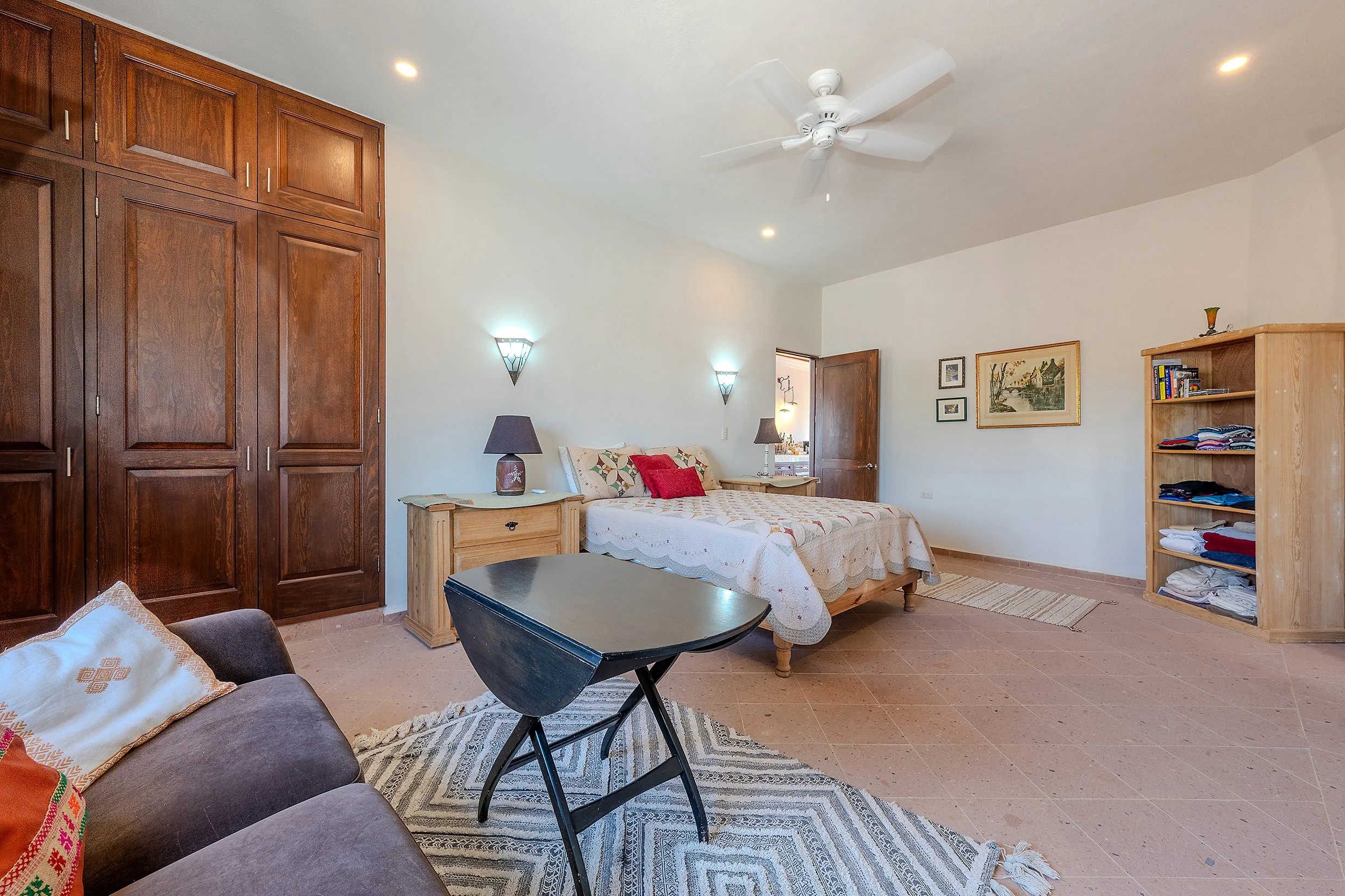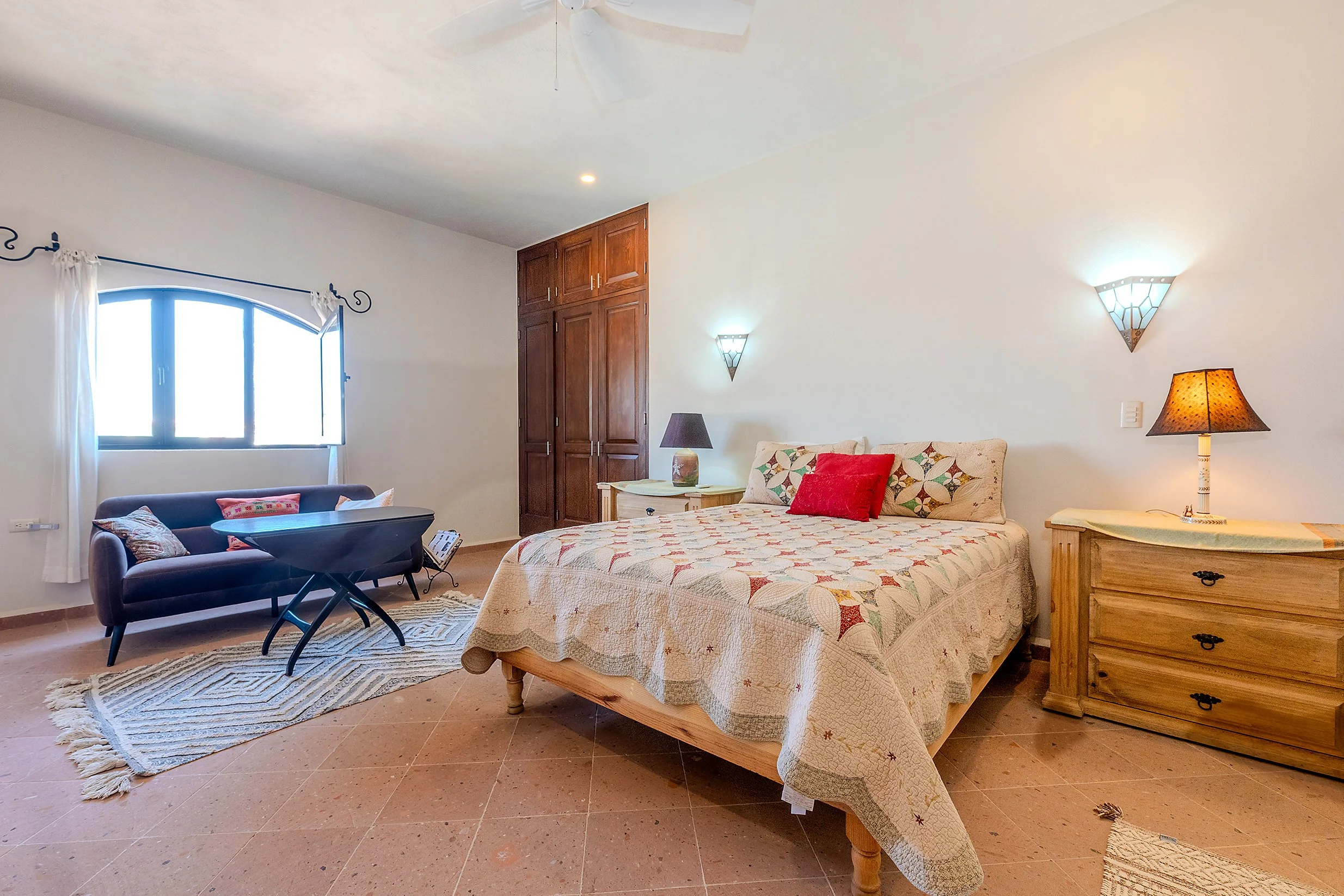 From this floor, a stairway leads to the rooftop terrace, where spectacular views of San Miguel de Allende and the surrounding mountains create a standout feature of the home.
